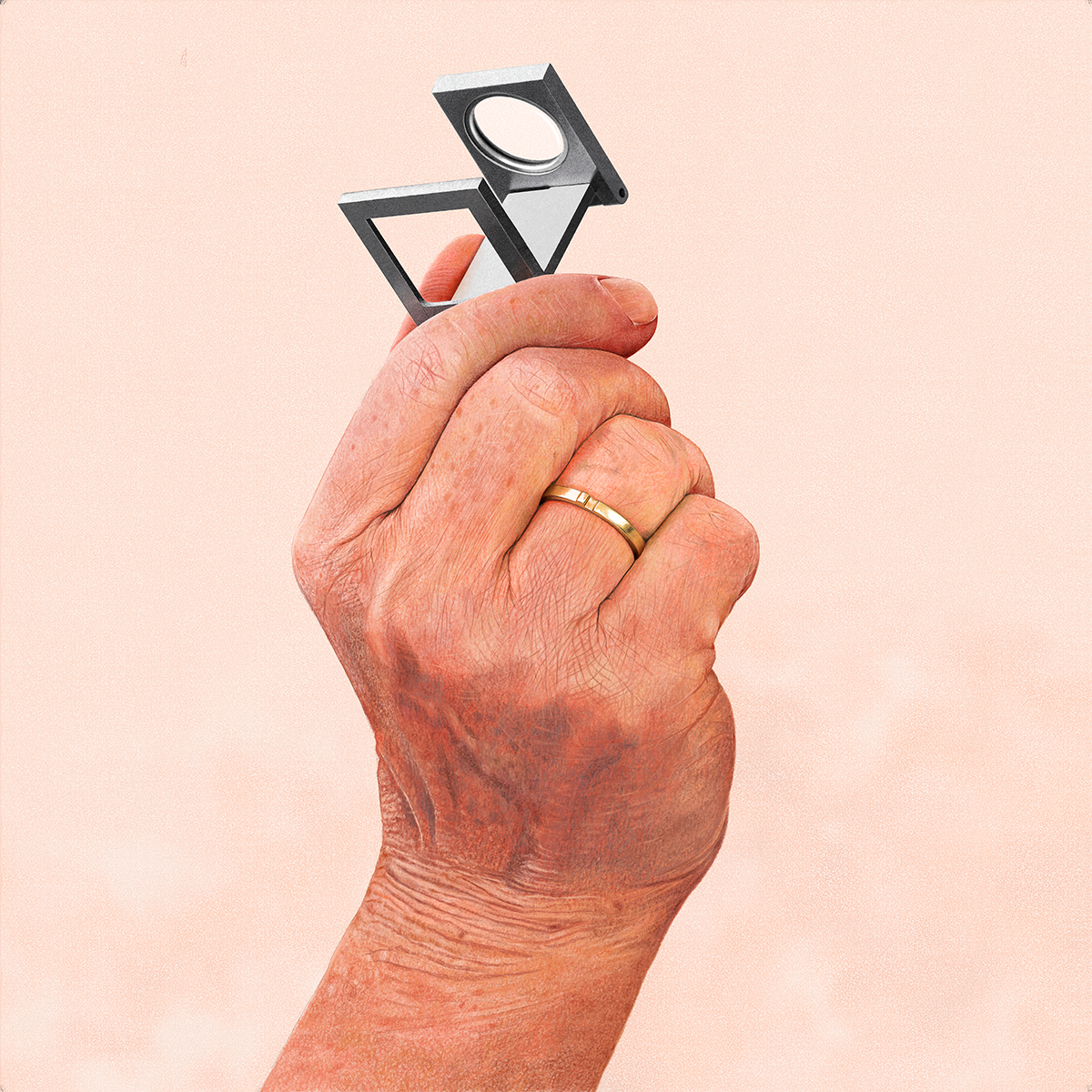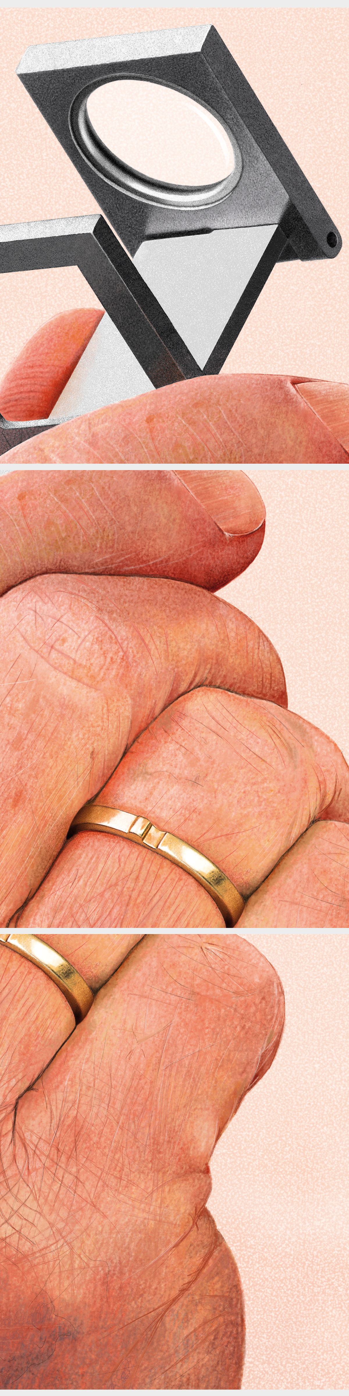 Ook de dradenteller (de loep) maakte ik op deze wijze apart. Deze afbeelding bestaat dus uit twee delen, die later één geheel werden.