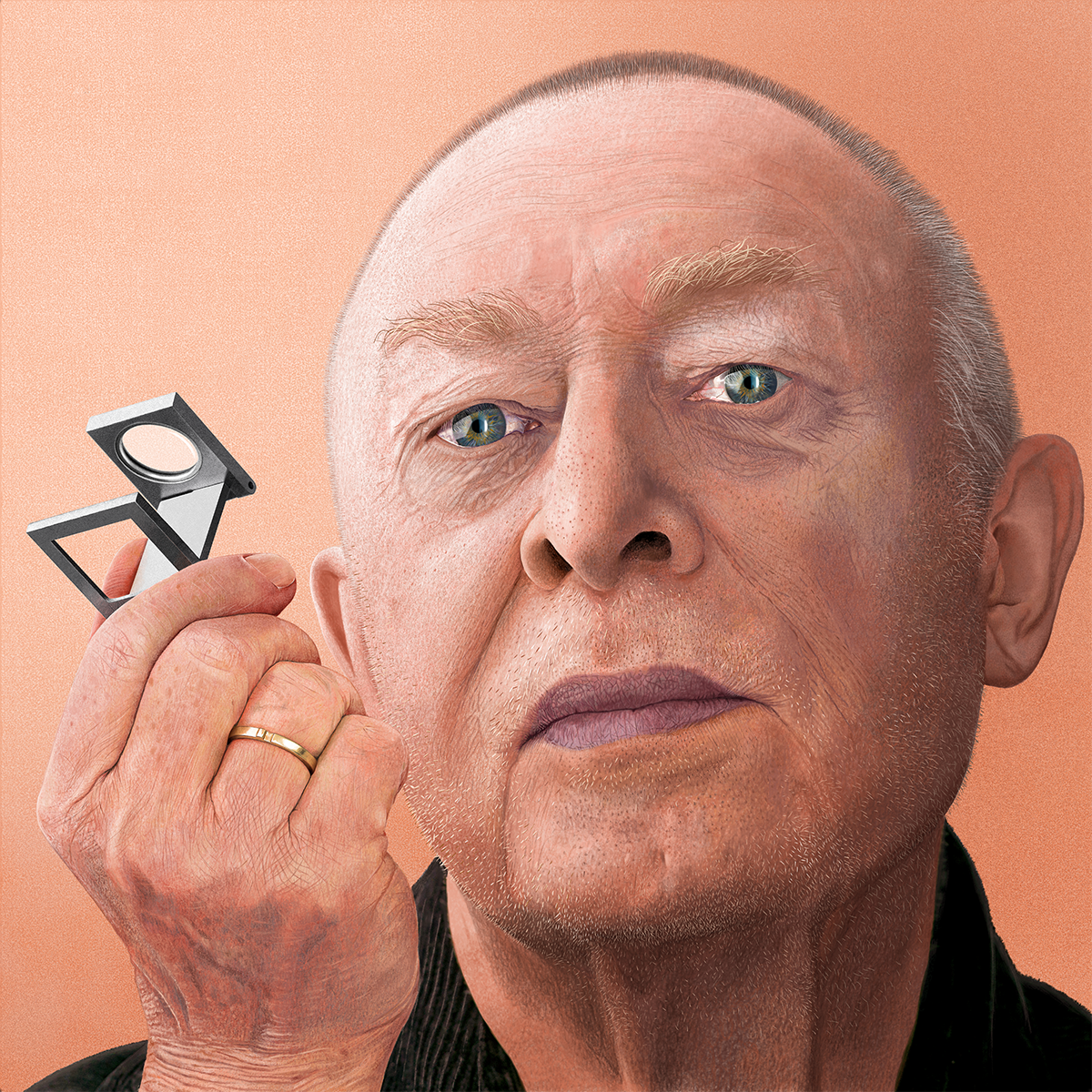 Er is een moment dat je als kunstenaar nieuwsgierig bent om een zelfportret te maken. Voor mij was dat in 2020. Symbolisch koos ik ervoor om dit af te beelden met gebruik van een zg. dradenteller een instrument als veelvuldig gebruikte loep in de grafische wereld, als symbool voor mijn uitzonderlijke perfectie.